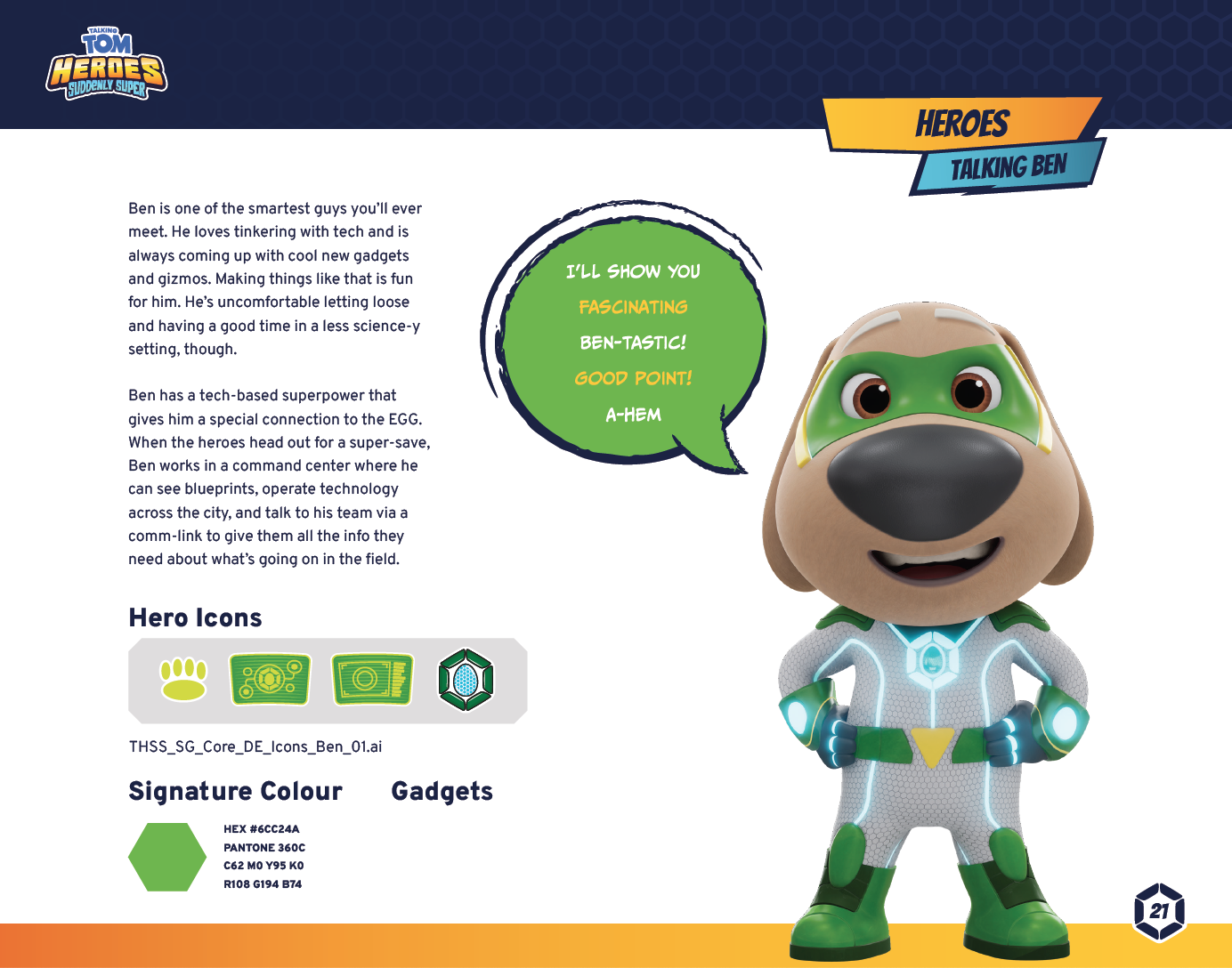 This comprehensive licensing style guide supports the new series which sees Talking Tom and his friends stumble across a device which suddenly gives them epic super powers! It’s fun, hilarious, and full of heart (and a few explosions too!)